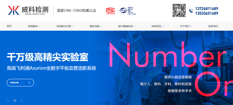 威科檢測(cè)(蘇州)有限公司隸屬于威科檢測(cè)集團(tuán),全國(guó)實(shí)驗(yàn)室布局立足廣東,輻射北京、江蘇、重慶和上海,實(shí)驗(yàn)室設(shè)有大動(dòng)物實(shí)驗(yàn)中心、醫(yī)療器械檢測(cè)中心、生物學(xué)評(píng)價(jià)中心、毒理實(shí)驗(yàn)中心、病理實(shí)驗(yàn)中心、微生物檢測(cè)中心、潔凈環(huán)境檢測(cè)中心和血液檢測(cè)中心,實(shí)驗(yàn)室參照ISO/IEC 17025和GLP of OECD建立實(shí)驗(yàn)室管理體系并獲有國(guó)家級(jí)CMA、省級(jí)CMA、CNAS資質(zhì)認(rèn)證以及動(dòng)物使用許可證資質(zhì)。并在廣州、江蘇、湖南、廣西、江西等地區(qū)建設(shè)多個(gè)全資子公司。威科依據(jù)CNAS-CL01:2018《檢測(cè)和校準(zhǔn)實(shí)驗(yàn)室能力認(rèn)可準(zhǔn)則》及相關(guān)認(rèn)可應(yīng)用準(zhǔn)則、《檢驗(yàn)檢測(cè)機(jī)構(gòu)資質(zhì)認(rèn)定能力評(píng)價(jià) 檢驗(yàn)檢測(cè)機(jī)構(gòu)通用要求》、《檢驗(yàn)檢測(cè)機(jī)構(gòu)資質(zhì)認(rèn)定能力評(píng)價(jià) 醫(yī)療器械檢驗(yàn)機(jī)構(gòu)要求》建立質(zhì)量管理體系,依照GLP準(zhǔn)則管理要求運(yùn)行動(dòng)物實(shí)驗(yàn)室,取得CNAS實(shí)驗(yàn)室認(rèn)可資質(zhì),國(guó)家CMA資質(zhì),廣東省CMA資質(zhì)和動(dòng)物使用許可證資質(zhì)。威科檢測(cè)具有專業(yè)的檢驗(yàn)技術(shù)團(tuán)隊(duì)和業(yè)務(wù)運(yùn)營(yíng)團(tuán)隊(duì),配置了先進(jìn)精準(zhǔn)的檢測(cè)設(shè)備,實(shí)驗(yàn)室面積約11000平方米,環(huán)境設(shè)施包括大動(dòng)物實(shí)驗(yàn)中心、SPF級(jí)動(dòng)物房、病理檢測(cè)室、化學(xué)表征分析實(shí)驗(yàn)室、微生物實(shí)驗(yàn)室、醫(yī)療器械性能檢測(cè)實(shí)驗(yàn)室等。威科檢測(cè)專注于生物醫(yī)藥檢驗(yàn)領(lǐng)域,提供生物學(xué)評(píng)價(jià)試驗(yàn)、大動(dòng)物實(shí)驗(yàn)研究、化學(xué)表征測(cè)試、微生物檢測(cè)、消毒滅菌驗(yàn)證、理化性能檢測(cè)、潔凈室檢測(cè)、包裝驗(yàn)證、老化試驗(yàn)、運(yùn)輸實(shí)驗(yàn)、體系認(rèn)證等服務(wù),致力于共創(chuàng)生物醫(yī)藥檢測(cè)服務(wù)創(chuàng)新平臺(tái),促進(jìn)醫(yī)療器械產(chǎn)業(yè)實(shí)現(xiàn)高質(zhì)量發(fā)展。