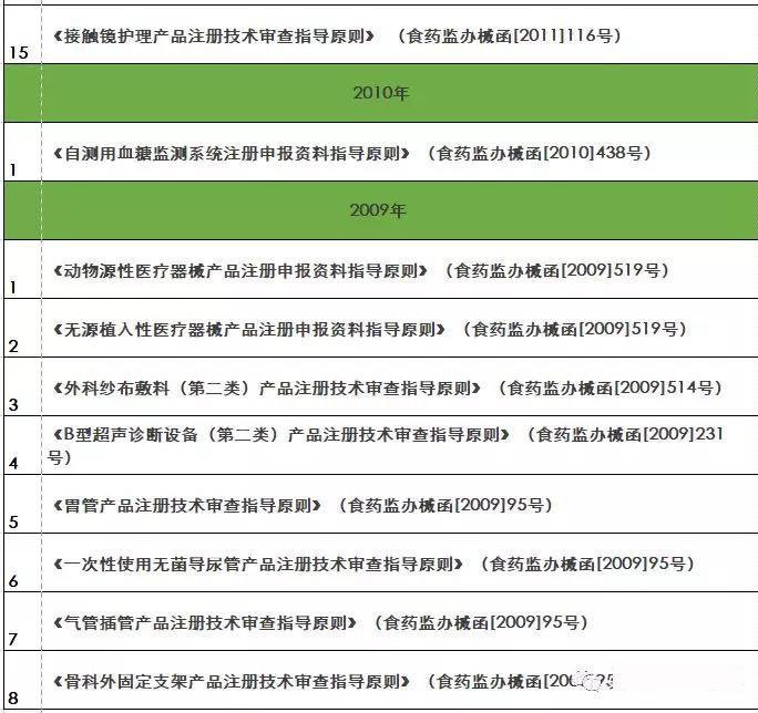 從2009年-2018年的所有醫(yī)療器械技術(shù)審查指導(dǎo)原則,具體情況如下: