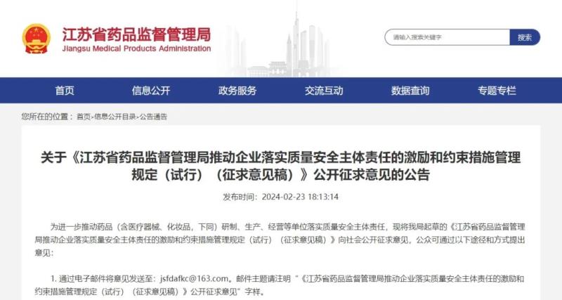 近日,江蘇省藥監(jiān)局發(fā)布《江蘇省藥品監(jiān)督管理局推動(dòng)企業(yè)落實(shí)質(zhì)量安全主體責(zé)任的激勵(lì)和約束措施管理規(guī)定(試行)(征求意見稿)》(以下簡稱《管理規(guī)定》),擬對(duì)“兩品一械”企業(yè)進(jìn)行質(zhì)量安全評(píng)級(jí)管理,并向社會(huì)公開征求意見。
