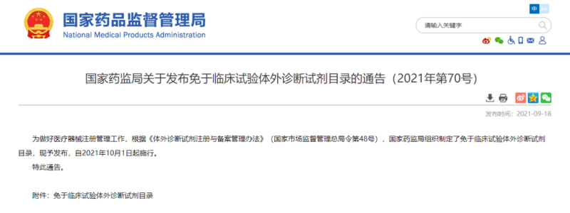 2021年9月,國家藥監(jiān)局發(fā)布《免于臨床試驗體外診斷試劑目錄(2021年)》,其中共包括423種體外診斷試劑產(chǎn)品。