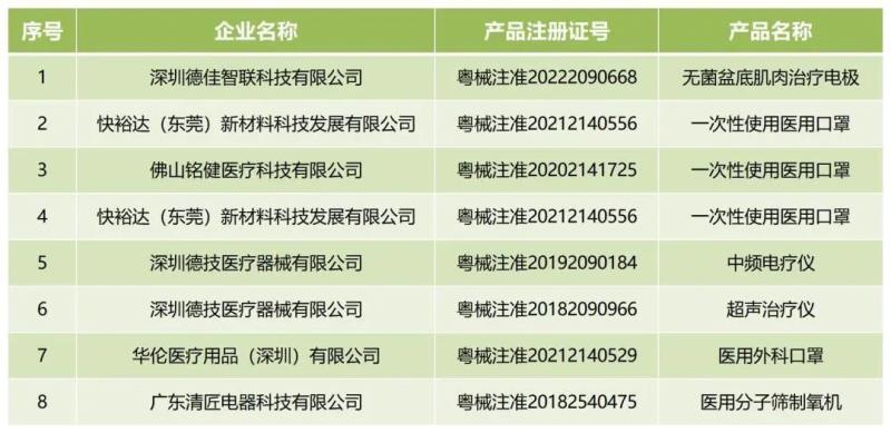 近日,廣東省藥監(jiān)局官網(wǎng)發(fā)布通告稱,按照《醫(yī)療器械注冊管理辦法》的規(guī)定,根據(jù)企業(yè)申請,廣東省藥品監(jiān)督管理局已依法注銷“粵械注準(zhǔn)20222090668”等8個醫(yī)療器械注冊證,其中包括超聲治療儀、無菌盆底肌肉治療電極、一次性使用醫(yī)用口罩等產(chǎn)品,具體明細(xì)如下: