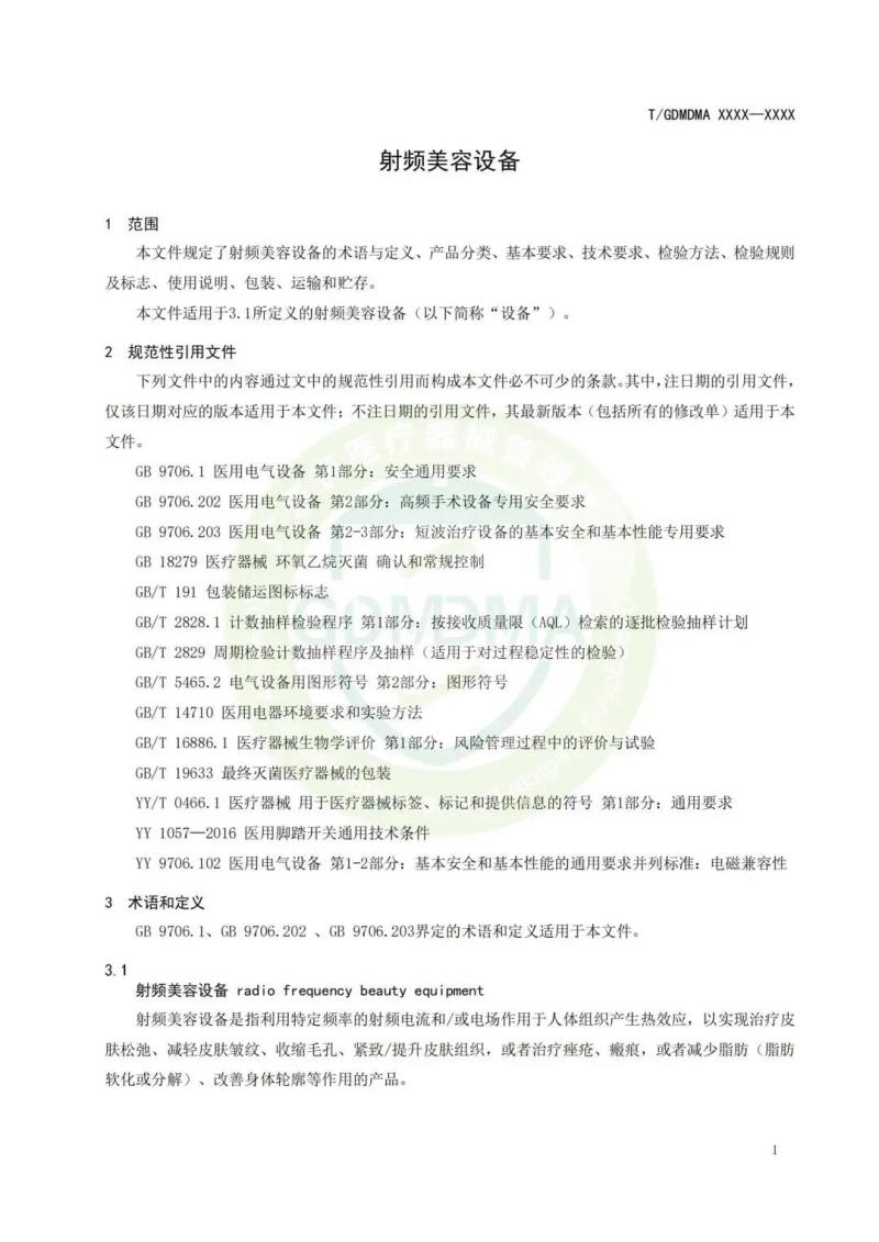 我們將《射頻美容設(shè)備》團(tuán)體標(biāo)準(zhǔn)征求意見稿以圖片形式展示如下: