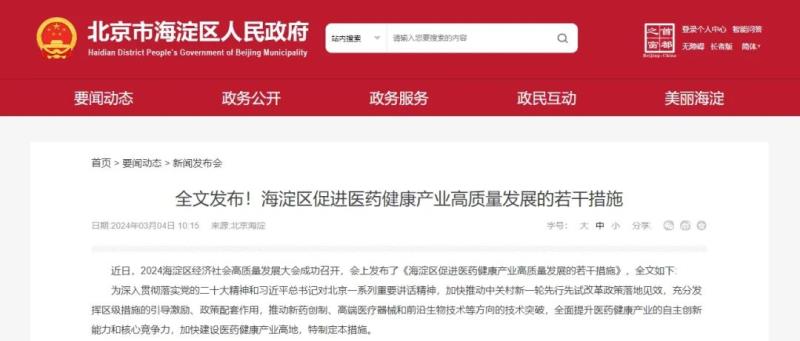 近日,北京市海淀區(qū)人民政府發(fā)布《海淀區(qū)促進醫(yī)藥健康產(chǎn)業(yè)高質(zhì)量發(fā)展的若干措施》(以下簡稱《措施》),其中提到醫(yī)療器械領域的支持方向主要包括高端醫(yī)學影像軟件及設備、植介入器械及高值耗材、醫(yī)療機器人、先進診療設備及生命支持設備、高端康復輔具及器材、體外診斷設備和試劑、基因檢測與合成設備、器官芯片、腦-機智能技術、人工智能醫(yī)用軟件、生物醫(yī)用材料等領域的研發(fā)、生產(chǎn)和服務。