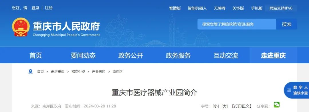 近日,重慶市人民政府發(fā)布一條產(chǎn)業(yè)園區(qū)招商引資動(dòng)態(tài),對重慶市醫(yī)療器械產(chǎn)業(yè)園進(jìn)行介紹,具體如下: