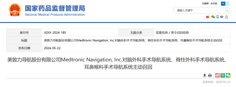 美敦力導(dǎo)航股份有限公司近期宣布對其生產(chǎn)的腦外科手術(shù)導(dǎo)航系統(tǒng)、脊柱外科手術(shù)導(dǎo)航系統(tǒng)以及耳鼻喉科手術(shù)導(dǎo)航系統(tǒng)進(jìn)行一級召回,意味著它們可能存在嚴(yán)重的安全風(fēng)險,需要立即采取行動以減少可能的傷害。