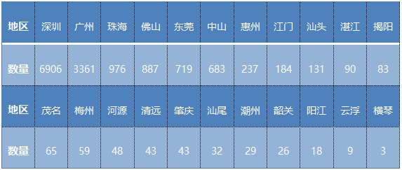 ↑ 表 11 廣東省實有第三類有/無源醫(yī)療器械注冊證數(shù)量(單位:張)