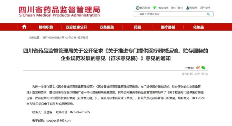 為了保障公眾依法獲取專門提供醫(yī)療器械運輸、貯存服務的企業(yè)相關信息,提高行業(yè)和監(jiān)管透明度,構(gòu)建川渝醫(yī)療器械一體化監(jiān)管模式,《意見(征求意見稿)》規(guī)定設區(qū)的市級藥品監(jiān)管部門要及時公布專門提供醫(yī)療器械運輸、貯存服務的企業(yè)相關信息,并細化明確了藥品監(jiān)管部門相關許可和監(jiān)管事項。