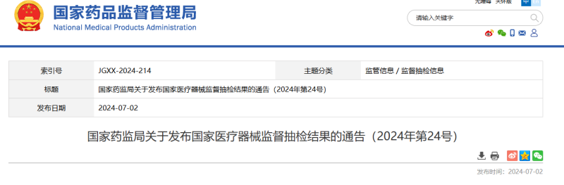 近日,國家藥監(jiān)局發(fā)布關(guān)于醫(yī)療器械監(jiān)督抽檢的結(jié)果通告: