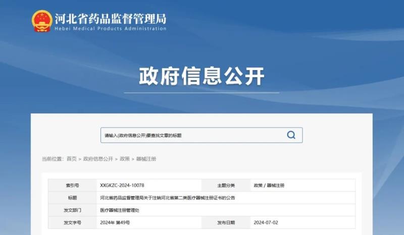 7月2日,河北藥監(jiān)局發(fā)布公告稱,按照《中華人民共和國行政許可法》《醫(yī)療器械監(jiān)督管理條例》有關規(guī)定,根據企業(yè)申請,該局依法注銷了醫(yī)用中心供氧系統(tǒng)、一次性使用無菌敷料、醫(yī)用分子篩制氧設備、定制式矯治器等47個第二類醫(yī)療器械注冊證書,具體明細如下:
