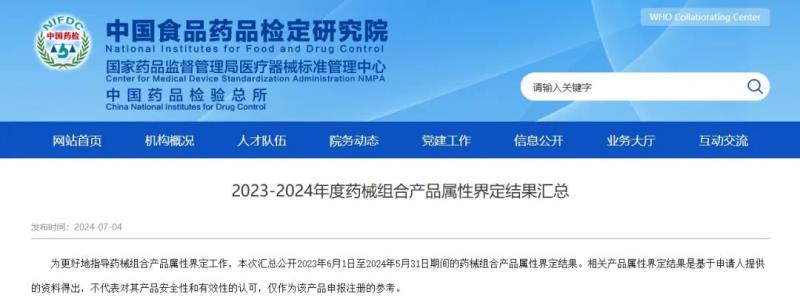近日,國(guó)家藥監(jiān)局醫(yī)療器械標(biāo)準(zhǔn)管理中心發(fā)布《2023-2024年度藥械組合產(chǎn)品屬性界定結(jié)果匯總》,匯總公開(kāi)了2023年6月1日至2024年5月31日期間的藥械組合產(chǎn)品屬性界定結(jié)果,具體如下: