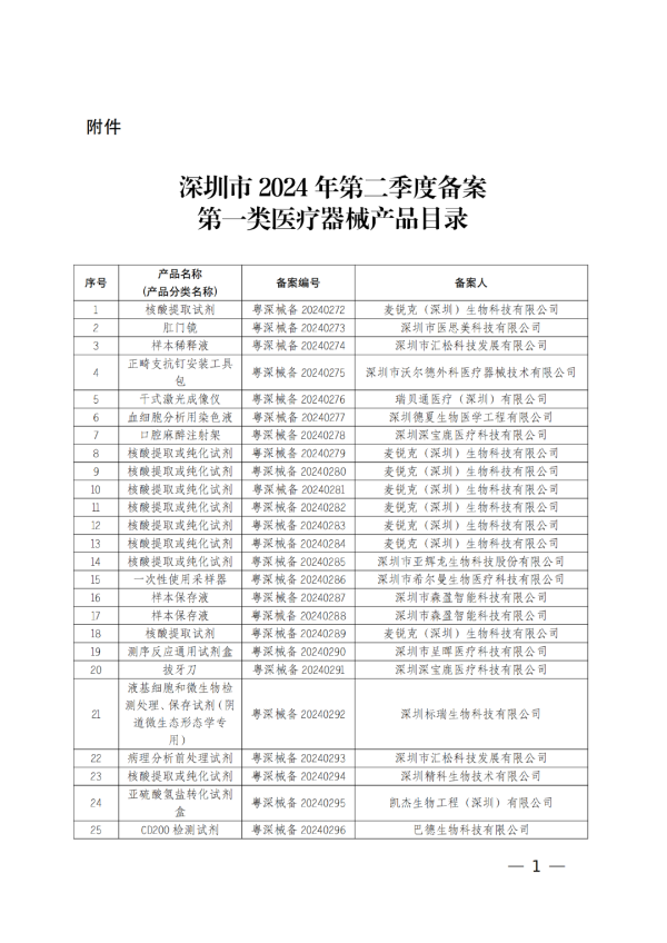 近日,深圳市市場監(jiān)督管理局公布了2024年第二季度備案的第一類醫(yī)療器械產(chǎn)品目錄,共計有183個產(chǎn)品,以體外診斷試劑類產(chǎn)品居多,具體如下: