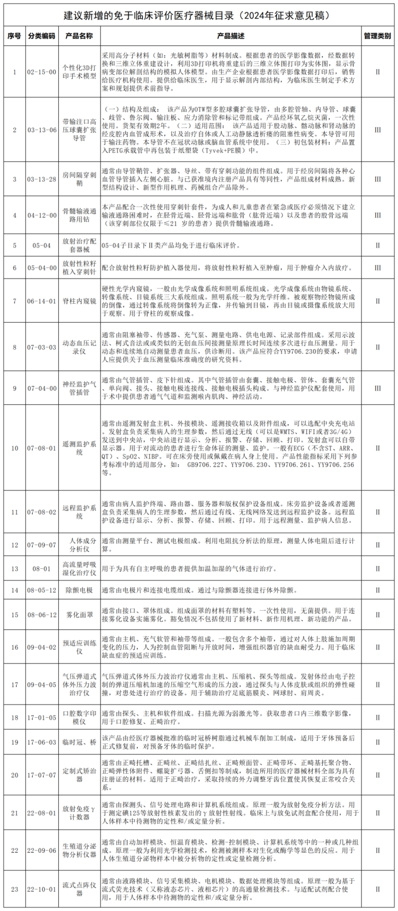 7月31日,國(guó)家藥監(jiān)局器審中心發(fā)布《建議新增和修訂的免于臨床評(píng)價(jià)醫(yī)療器械目錄(2024年征求意見(jiàn)稿)》,并向社會(huì)公開(kāi)征求意見(jiàn)。