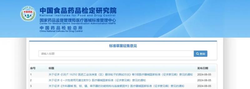 8月5日,國家藥監(jiān)局醫(yī)療器械標準管理中心發(fā)布幾則關于征求醫(yī)療器械國家標準意見的通知,通知顯示,近期共有5項標準形成了征求意見稿,具體明細如下: