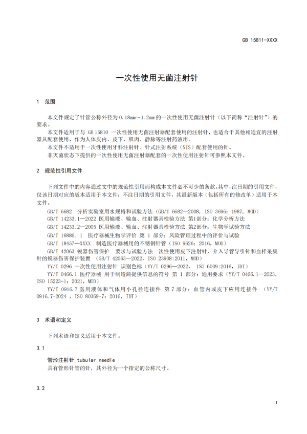 我們將《一次性使用無菌注射針》征求意見稿正文內(nèi)容以圖片形式轉載如下:
