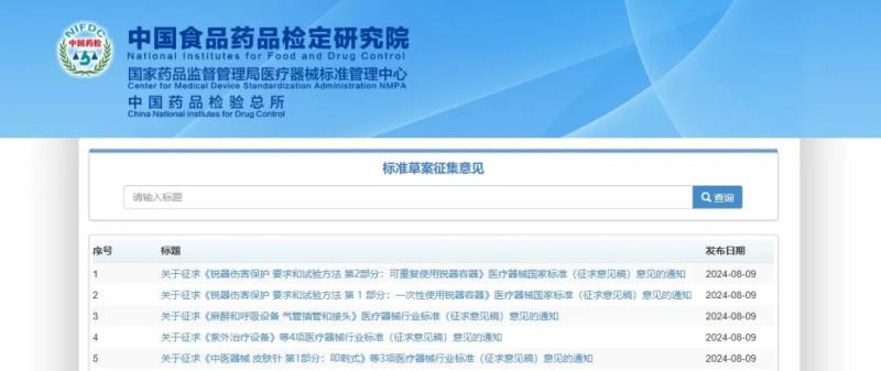 8月9日,國家藥監(jiān)局醫(yī)療器械標(biāo)準(zhǔn)管理中心發(fā)布幾則關(guān)于征求醫(yī)療器械行業(yè)標(biāo)準(zhǔn)意見的通知,通知顯示,近期共有10項(xiàng)標(biāo)準(zhǔn)形成了征求意見稿,具體明細(xì)如下: