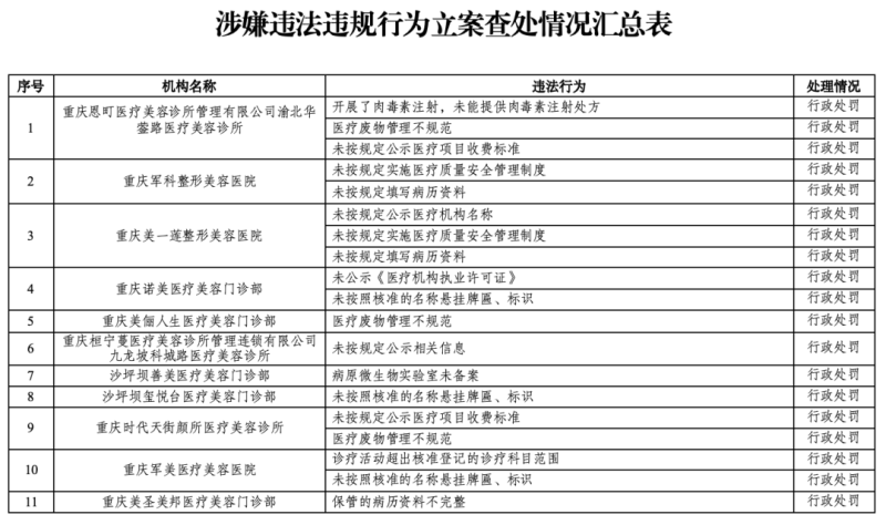 8月15日,2024年重慶市醫(yī)療美容機構“你點名 我監(jiān)督”交叉執(zhí)法檢查活動結果出爐,群眾點名或投訴較多的22家醫(yī)療美容機構中,已有11家被立案查處,占被檢查單位的50%。