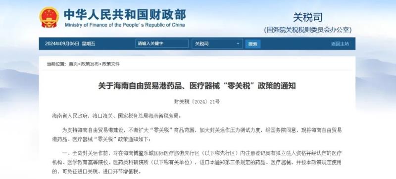 一、全島封關運作前,對在海南博鰲樂城國際醫(yī)療旅游先行區(qū)(以下稱先行區(qū))內注冊登記具有獨立法人資格并經認定的醫(yī)療機構、醫(yī)學教育高等院校、醫(yī)藥類科研院所(以下稱有關單位),進口本通知第三條規(guī)定的藥品、醫(yī)療器械,并按本政策規(guī)定使用的,可免征進口關稅、進口環(huán)節(jié)增值稅。 符合享受政策條件的有關單位進口藥品、醫(yī)療器械,自愿繳納進口環(huán)節(jié)增值稅的,可在辦理減免稅手續(xù)時提出申請。 二、符合享受政策條件的有關單位名單,由先行區(qū)管理局會同海南省衛(wèi)生健康、藥品監(jiān)督管理、教育、科技、財政部門,以及海口海關、國家稅務總局海南省稅務局等認定,動態(tài)調整,并函告??诤jP、國家稅務總局海南省稅務局。 三、享受本通知免征進口關稅、進口環(huán)節(jié)增值稅的藥品、醫(yī)療器械(以下稱免稅藥品、醫(yī)療器械)包括: (一)已在我國批準注冊的進口藥品、醫(yī)療器械; (二)按國務院有關規(guī)定,尚未獲得我國批準注冊,但經海南省人民政府批準允許在先行區(qū)內進口使用的藥品(不含疫苗)、醫(yī)療器械(以下稱特許藥品、醫(yī)療器械)。 四、有關單位進口免稅藥品、醫(yī)療器械前,由先行區(qū)管理局會同海南省藥品監(jiān)督管理部門核實每批進口藥品、醫(yī)療器械注冊證或相關批準文件,確認有關單位進口商品屬于政策規(guī)定范圍內的藥品、醫(yī)療器械,并函告有關單位所在地海關、稅務部門。 有關單位向先行區(qū)所在地海關申請辦理減免稅手續(xù)時,先行區(qū)管理局應參照現(xiàn)行特許藥品、醫(yī)療器械管理模式,對申請免稅的藥品、醫(yī)療器械進行管理,并將相關信息及時上傳先行區(qū)特許藥品、醫(yī)療器械追溯管理平臺,對免稅藥品、醫(yī)療器械全流程監(jiān)管。 五、符合享受政策條件的醫(yī)學教育高等院校、醫(yī)藥類科研院所進口的免稅藥品、醫(yī)療器械僅限在先行區(qū)內自用。 六、符合享受政策條件的醫(yī)療機構憑本機構醫(yī)師開具的處方(醫(yī)囑),向在本機構現(xiàn)場就診的患者銷售免稅藥品、醫(yī)療器械。銷售量應符合診療需要及處方管理有關規(guī)定。稅收政策按照現(xiàn)行國內環(huán)節(jié)稅收政策有關規(guī)定執(zhí)行。 除上述情形外,有關單位不得將免稅藥品、醫(yī)療器械轉讓給個人。 七、對符合享受政策條件的有關單位進口的免稅藥品、醫(yī)療器械,在海關監(jiān)管年限內應依法接受海關監(jiān)管;對醫(yī)療機構憑本機構醫(yī)師開具的處方(醫(yī)囑)向患者銷售后的免稅藥品、醫(yī)療器械,海關不再按特定減免稅貨物進行后續(xù)監(jiān)管。 八、患者在醫(yī)療機構獲得的免稅藥品、醫(yī)療器械屬于個人使用的最終商品,不得再次銷售,應在先行區(qū)內使用,不得帶離、寄遞出先行區(qū)。 九、有關單位因客觀原因按相關規(guī)定轉讓免稅藥品、醫(yī)療器械的,應事先經海南省藥品監(jiān)督管理、衛(wèi)生健康等部門審核同意。其中,對屬于海關監(jiān)管年限內的免稅藥品、醫(yī)療器械,有關單位應憑上述部門的確認材料按規(guī)定向其所在地海關補繳進口關稅、進口環(huán)節(jié)增值稅。 有關單位違反本通知規(guī)定將處于海關監(jiān)管年限內的免稅藥品、醫(yī)療器械進行轉讓的,由海關按規(guī)定處理。 患者違反規(guī)定再次銷售或將免稅藥品、醫(yī)療器械帶離、寄遞出先行區(qū)的,先行區(qū)管理局應予以追回,無法追回的,由先行區(qū)管理局按規(guī)定處理。 上述轉讓、銷售行為,照章征收國內環(huán)節(jié)增值稅。 十、海南省人民政府應落實主體責任,商財政部、海關總署、稅務總局、國家衛(wèi)生健康委、國家藥監(jiān)局等部門制定管理辦法,明確符合享受政策條件的有關單位的確定程序,免稅藥品、醫(yī)療器械管理要求,患者在先行區(qū)內使用要求等,并明確對有關單位違規(guī)使用、處置以及患者違規(guī)銷售、帶離、寄遞上述商品的處理標準、處罰辦法和聯(lián)合懲戒措施。管理辦法與本通知同步印發(fā)實施。 十一、自政策實施起,海南省人民政府應組織定期比對免稅藥品、醫(yī)療器械進口、銷售及使用情況,并加強對符合享受政策條件的有關單位使用、處置免稅藥品、醫(yī)療器械〔包括醫(yī)療機構醫(yī)師開具處方(醫(yī)囑)〕的管理和監(jiān)督,及時查處違法違規(guī)行為,并每3個月向本通知發(fā)文單位報送實施情況,包括符合享受政策條件的有關單位基本情況,每個單位進口、銷售免稅藥品和醫(yī)療器械情況以及稅款減免數(shù)據(jù)等。 海南省有關部門應完善先行區(qū)特許藥品、醫(yī)療器械追溯管理平臺功能,做好技術系統(tǒng)升級改造,滿足免稅藥品、醫(yī)療器械管理需要,同時加強信息互聯(lián)互通,共享符合享受政策條件的有關單位、患者以及免稅藥品、醫(yī)療器械等信息,加強監(jiān)管、防控風險。 十二、海南省人民政府加強對本政策執(zhí)行的監(jiān)督檢查,防止出現(xiàn)違法違規(guī)行為,有關情況及時上報本通知發(fā)文單位。 十三、對違反本通知規(guī)定,構成倒賣、代購、走私免稅藥品、醫(yī)療器械行為或者違反海關監(jiān)管規(guī)定行為的,由海關依照有關