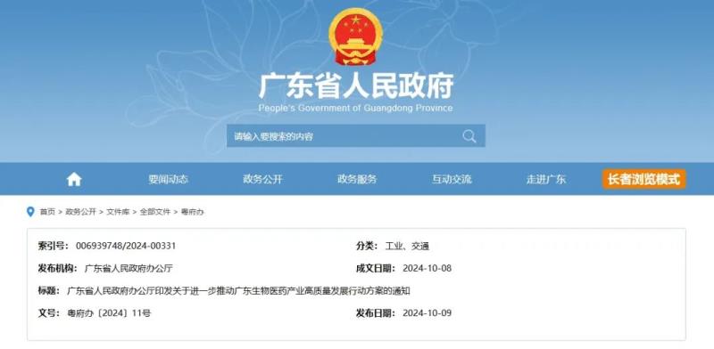 10月9日,廣東省人民政府發(fā)布《關(guān)于進(jìn)一步推動(dòng)廣東生物醫(yī)藥產(chǎn)業(yè)高質(zhì)量發(fā)展的行動(dòng)方案》(以下簡(jiǎn)稱(chēng)《方案》),其中提到,力爭(zhēng)到2027年,廣東省生物醫(yī)藥與健康產(chǎn)業(yè)集群規(guī)模超萬(wàn)億元,規(guī)上醫(yī)藥工業(yè)規(guī)模超5000億元?!斗桨浮啡膬?nèi)容如下: