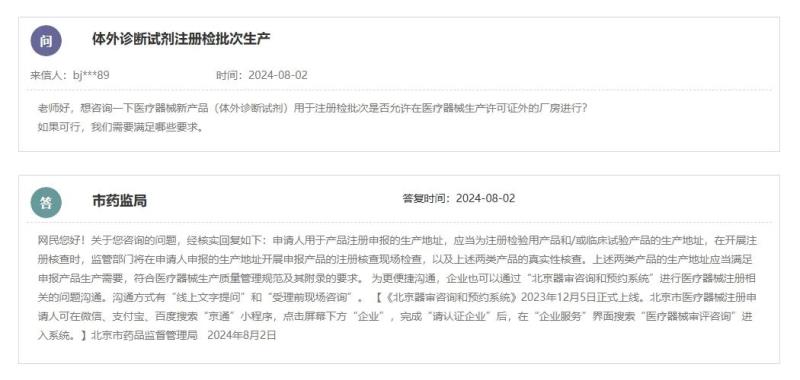 根據(jù)北京市藥監(jiān)局的答復(fù),申請(qǐng)人用于產(chǎn)品注冊(cè)申報(bào)的生產(chǎn)地址,應(yīng)當(dāng)為注冊(cè)檢驗(yàn)用產(chǎn)品和/或臨床試驗(yàn)產(chǎn)品的生產(chǎn)地址,在開展注冊(cè)核查時(shí),監(jiān)管部門將在申請(qǐng)人申報(bào)的生產(chǎn)地址開展申報(bào)產(chǎn)品的注冊(cè)核查現(xiàn)場(chǎng)檢查,以及上述兩類產(chǎn)品的真實(shí)性核查。上述兩類產(chǎn)品的生產(chǎn)地址應(yīng)當(dāng)滿足申報(bào)產(chǎn)品生產(chǎn)需要,符合醫(yī)療器械生產(chǎn)質(zhì)量管理規(guī)范及其附錄的要求。