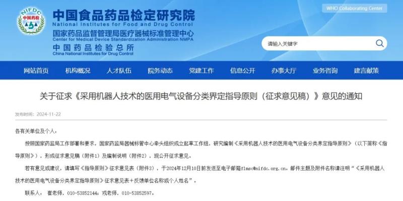 近日,國家藥監(jiān)局醫(yī)療器械標準管理中心發(fā)布《采用機器人技術(shù)的醫(yī)用電氣設(shè)備分類界定指導(dǎo)原則(征求意見稿)》(以下簡稱《指導(dǎo)原則》),并向社會公開征求意見。