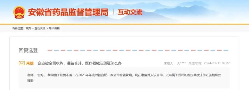 由于業(yè)務(wù)調(diào)整或企業(yè)發(fā)展需要,企業(yè)被收購或兼并是很常見的現(xiàn)象,近期小編在安徽省藥監(jiān)局看到一則有關(guān)企業(yè)被收購后醫(yī)療器械注冊證該如何處理的問答,分享給大家。
