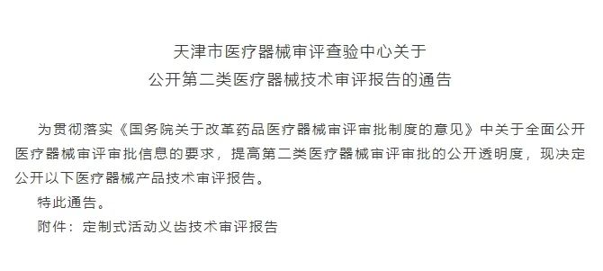 近日,天津市醫(yī)療器械審評(píng)查驗(yàn)中心在其公眾號(hào)“天津器審”公開(kāi)了天津恒齒博樂(lè)科技有限公司定制式活動(dòng)義齒的技術(shù)審評(píng)報(bào)告,其中提到該產(chǎn)品存在問(wèn)題及主要補(bǔ)正意見(jiàn)如下: