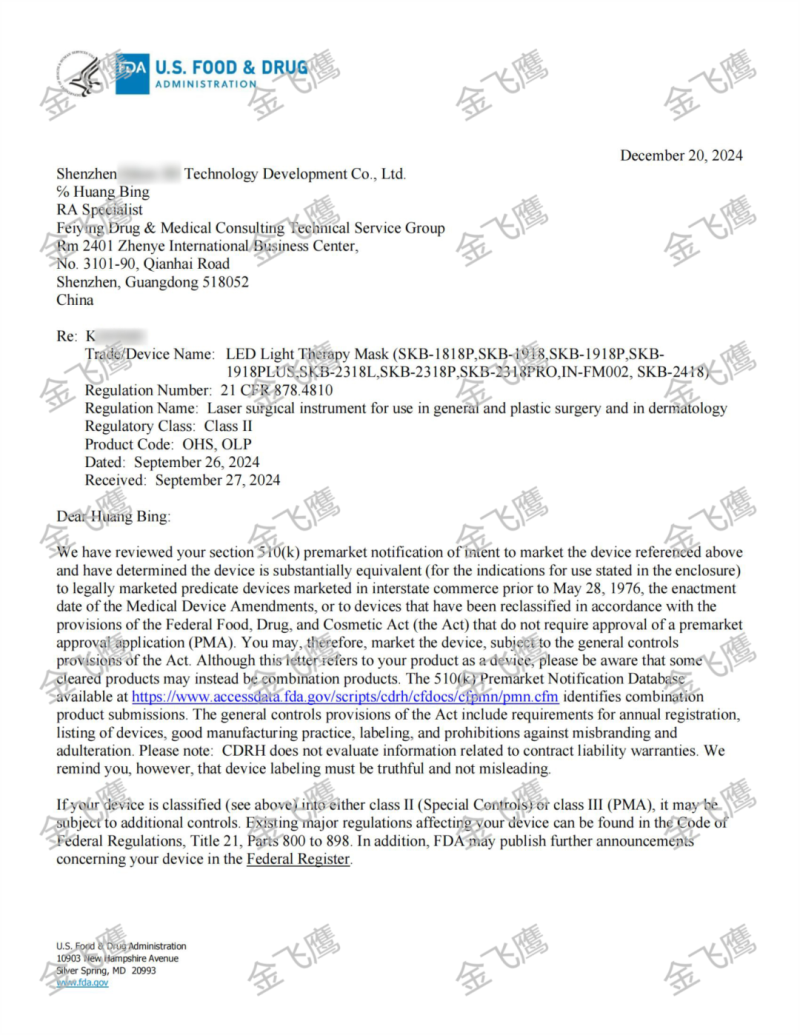 取得雙K號的案例實(shí)屬首例,但紅藍(lán)光面罩我們此前已積累了不少案例,今年10月,我們輔導(dǎo)的東莞一家企業(yè)成功獲批了紅藍(lán)光面罩510(k),2022年也就此類產(chǎn)品宣傳過一次。(戳此回顧→紅藍(lán)光面罩)
