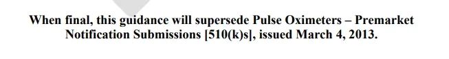 近日,F(xiàn)DA發(fā)布了FDA發(fā)布了針對(duì)脈搏血氧儀的最新指南草案。該草案定稿后,將取代2013年版脈搏血氧儀指南。