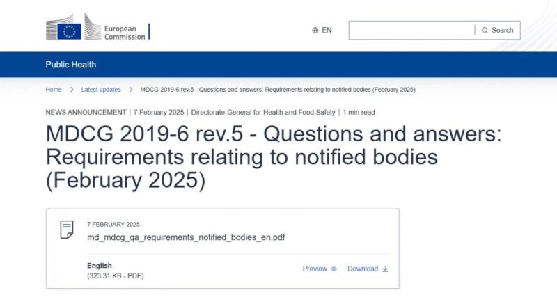 近日,歐盟發(fā)布了有關(guān)公告機(jī)構(gòu)要求問答的指南文件MDCG 2019-6 rev.5,對該指南文件進(jìn)行了以下更新: