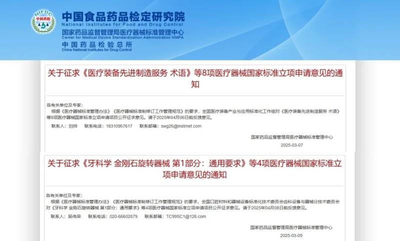 近日,國家藥監(jiān)局醫(yī)療器械標(biāo)管中心發(fā)布《醫(yī)療裝備先進制造服務(wù)術(shù)語》《摻銩光纖激光治療機技術(shù)要求》《牙科學(xué) 金剛石旋轉(zhuǎn)器械 第1部分:通用要求》等12項醫(yī)療器械國家標(biāo)準(zhǔn)立項申請意見的通知,同時隨附了各項標(biāo)準(zhǔn)草案,并向社會公開征求意見,意見征求時間均為一個月。