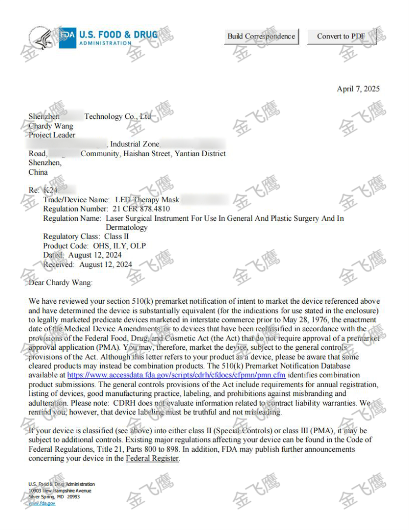 ↓畢竟只有那些有挑戰(zhàn)性的案例 才能更好地展現(xiàn)我們的專業(yè)實(shí)力 那么既然LED面罩的510(k)案例 為什么這次還要特別拿出來說呢? 接下來請聽我細(xì)細(xì)道來 它有四種模式 分別對應(yīng)不同的預(yù)期用途 ? 藍(lán)光模式(460nm)-治療痤瘡 更值得一提的是 2?? 面罩+頸罩組合款 由于紅光及混合光均有祛皺作用 那么對于該產(chǎn)品的第二個型號來說 面部+頸部祛皺 都結(jié)合到一起了 而在這個成功案例的背后 凝聚著金飛鷹團(tuán)隊(duì) ? 對FDA法規(guī)的深刻理解 ? 對光療設(shè)備的專業(yè)認(rèn)知 所以 假如您也正在研發(fā)或有意向研發(fā)此類產(chǎn)品 記得聯(lián)系我們~ 當(dāng)然,假如您有其他產(chǎn)品的美國FDA認(rèn)證需求 也歡迎隨時聯(lián)系我們咨詢 ?400-888-7587 國內(nèi)外4000+服務(wù)案例支撐 定能幫您加速產(chǎn)品上市進(jìn)程~