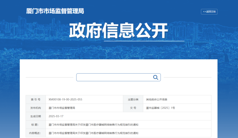 近日,廈門(mén)市市場(chǎng)監(jiān)督管理局發(fā)布《廈門(mén)市醫(yī)療器械網(wǎng)絡(luò)銷(xiāo)售行為規(guī)范指引》(以下簡(jiǎn)稱(chēng)《指引》),以貫徹落實(shí)醫(yī)療器械網(wǎng)絡(luò)銷(xiāo)售常態(tài)化監(jiān)管要求,引導(dǎo)醫(yī)療器械網(wǎng)絡(luò)銷(xiāo)售經(jīng)營(yíng)者加強(qiáng)合規(guī)管理,保證醫(yī)療器械在網(wǎng)絡(luò)銷(xiāo)售環(huán)節(jié)的質(zhì)量安全?!吨敢啡娜缦拢?/span>