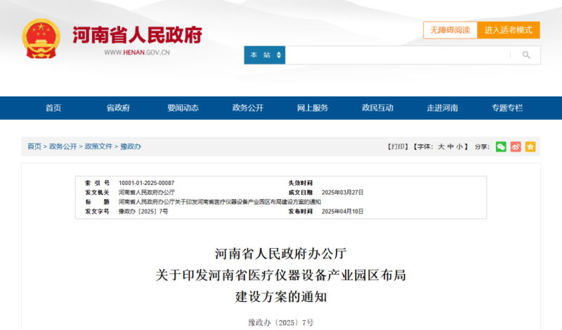 近日,河南省人民政府發(fā)布辦公廳《河南省醫(yī)療儀器設備產業(yè)園區(qū)布局建設方案》(以下簡稱《方案》),《方案》明確,將依托國家級和省級開發(fā)區(qū),重點規(guī)劃建設7個專業(yè)化、高端化醫(yī)療儀器設備產業(yè)園區(qū),推動產業(yè)鏈上下游集聚,構建“一區(qū)一園一主業(yè)”的協(xié)同錯位發(fā)展格局。