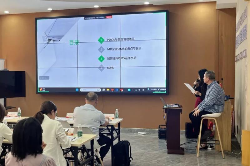 作為本次培訓(xùn)的主講嘉賓,金飛鷹集團(tuán)創(chuàng)始人車號(hào)爽老師憑借自身近30年的藥械類企業(yè)研發(fā)、生產(chǎn)、質(zhì)量和全面管理工作經(jīng)驗(yàn),圍繞“提升醫(yī)療器械質(zhì)量管理體系運(yùn)作水平”展開了深度分享。車?yán)蠋煹闹v解由淺入深,層層遞進(jìn),從質(zhì)量管理體系構(gòu)建的基本邏輯出發(fā),深刻剖析了醫(yī)械企業(yè)在實(shí)操過程中遇到的痛點(diǎn)和薄弱環(huán)節(jié),最終回歸到提升質(zhì)量管理體系運(yùn)作水平這一核心命題。