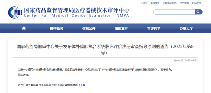 4月22日,國(guó)家藥監(jiān)局器審中心發(fā)布《體外膜肺氧合系統(tǒng)臨床評(píng)價(jià)注冊(cè)審查指導(dǎo)原則》(以下簡(jiǎn)稱《指導(dǎo)原則》),其中提到,體外膜肺氧合醫(yī)療器械產(chǎn)品分為體外膜肺氧合設(shè)備和體外膜肺氧合器具,可通過(guò)同品種臨床評(píng)價(jià)路徑開(kāi)展臨床評(píng)價(jià),即基于與已上市產(chǎn)品的全面對(duì)比,以及科學(xué)設(shè)計(jì)的、高質(zhì)量的、可靠的臺(tái)架試驗(yàn)、動(dòng)物試驗(yàn),和/或一定樣本量的臨床試驗(yàn)開(kāi)展臨床評(píng)價(jià)。