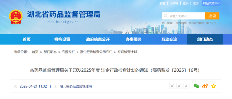 近日,湖北省藥監(jiān)局發(fā)布《2025年度涉企行政檢查計劃的通知》,其中跟醫(yī)療器械有關(guān)的檢查計劃具體如下: