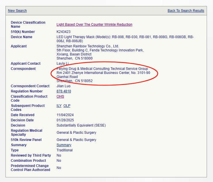 近年來我們輔導(dǎo)的紅藍(lán)光面罩510(k)案例不計(jì)其數(shù)(詳情可查看“成功案例”合集),本文我們只挑選出2025年獲批的案例進(jìn)行展示: