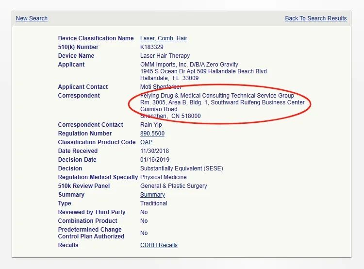 2024年9月,我們成功輔導(dǎo)美國(guó)企業(yè)Apira Science Inc獲批激光生發(fā)梳的510(k),在此之前,還有多家國(guó)內(nèi)企業(yè)獲批案例: