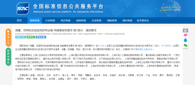 據(jù)全國標準信息公共服務平臺近日公布,GB/T 18268.1-2025《測量、控制和實驗室用的電設備 電磁兼容性要求 第1部分:通用要求》推薦性國家標準批準發(fā)布,該標準即將替代GB/T 18268.1-2010,于2026年1月1日起正式實施。據(jù)悉,該標準等同采用IEC國際標準:IEC 61326-1:2020。