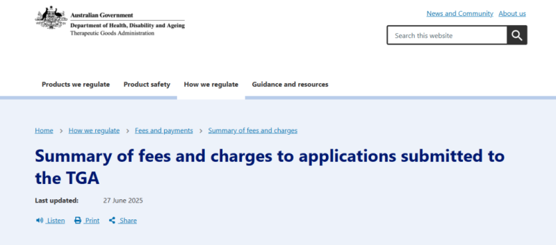 近日,澳大利亞TGA更新了2025年7月起(新的財年)的費用和收費摘要,涉及Therapeutic Goods Act 1989范圍內(nèi)所有活動的費用,我們對其中大家最為關(guān)注的醫(yī)療器械(包括體外診斷試劑)收費部分進行重點轉(zhuǎn)載: