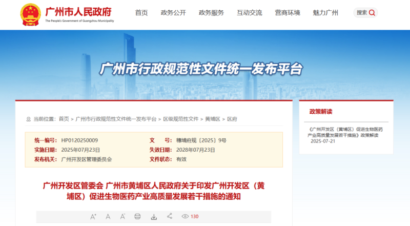 本政策措施自印發(fā)之日起施行,有效期3年。本政策措施所執(zhí)行的市級政策文件,其時效從其規(guī)定;執(zhí)行期間因上級法律法規(guī)、規(guī)章及政策調(diào)整導致本政策措施與上級規(guī)定不一致的,本政策措施相應(yīng)條款不再執(zhí)行?!稄V州開發(fā)區(qū)(黃埔區(qū))促進生物醫(yī)藥產(chǎn)業(yè)高質(zhì)量發(fā)展辦法》(穗埔府規(guī)〔2024〕4號)同時廢止。
