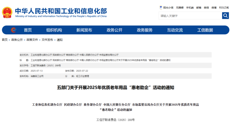 近日,國家工信部、民政部等五部門發(fā)布《關(guān)于開展2025年優(yōu)質(zhì)老年用品‘惠老助企’活動的通知》(以下簡稱《通知》),以全面落實國務(wù)院辦公廳《關(guān)于發(fā)展銀發(fā)經(jīng)濟(jì)增進(jìn)老年人福祉的意見》,持續(xù)推動老年用品增品種、提品質(zhì)、創(chuàng)品牌,大力提升老年用品供需適配能力?!锻ㄖ肪唧w內(nèi)容如下: