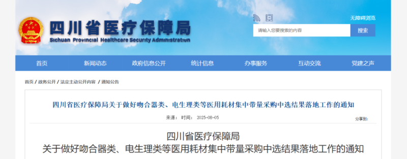 近日,四川省醫(yī)療保障局發(fā)布《關于做好吻合器類、電生理類等醫(yī)用耗材集中帶量采購中選結果落地工作的通知》,以下為通知具體內容: